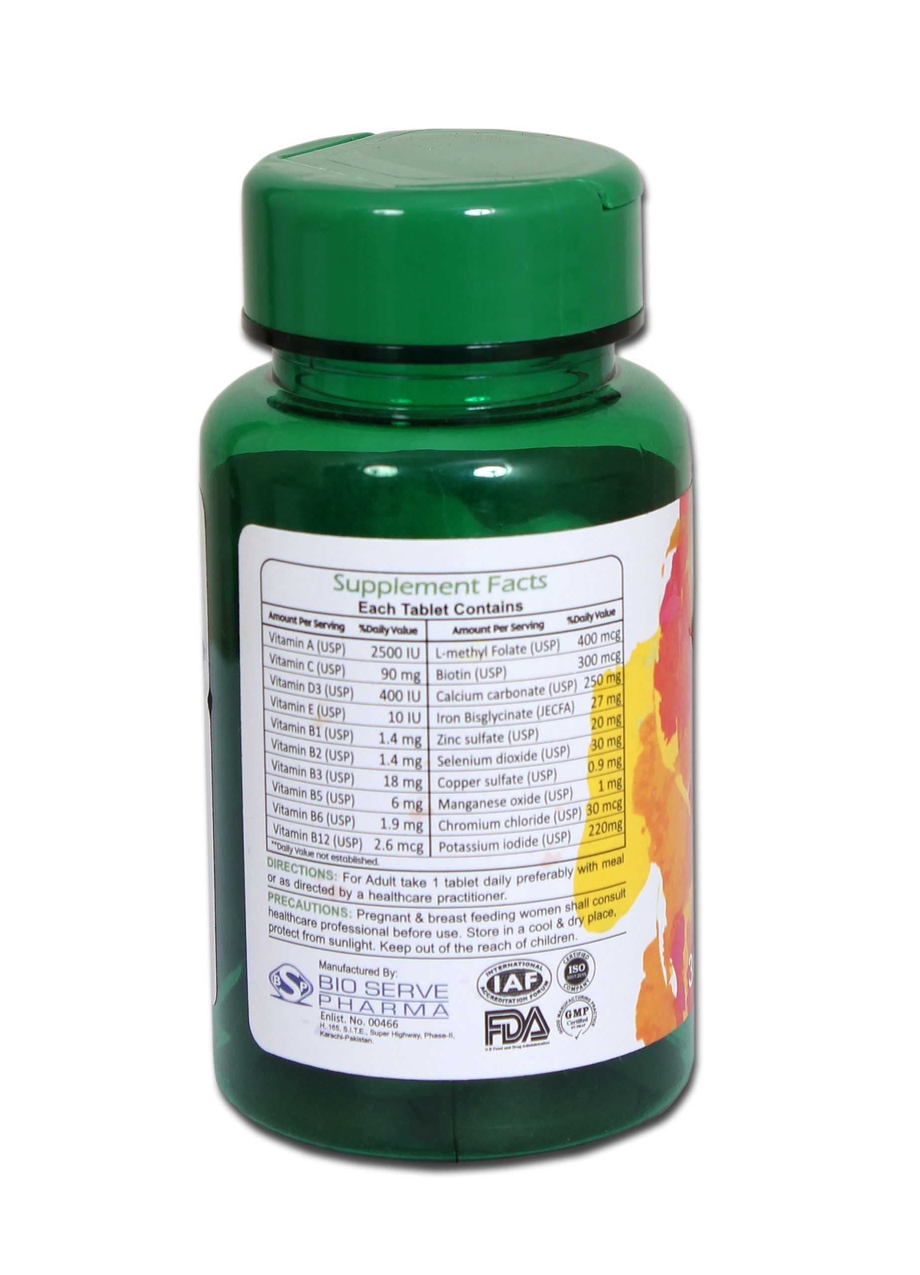 | Vitamin A (USP) | 2500 IU | L-methyl Folate (USP) | 400 mcg |